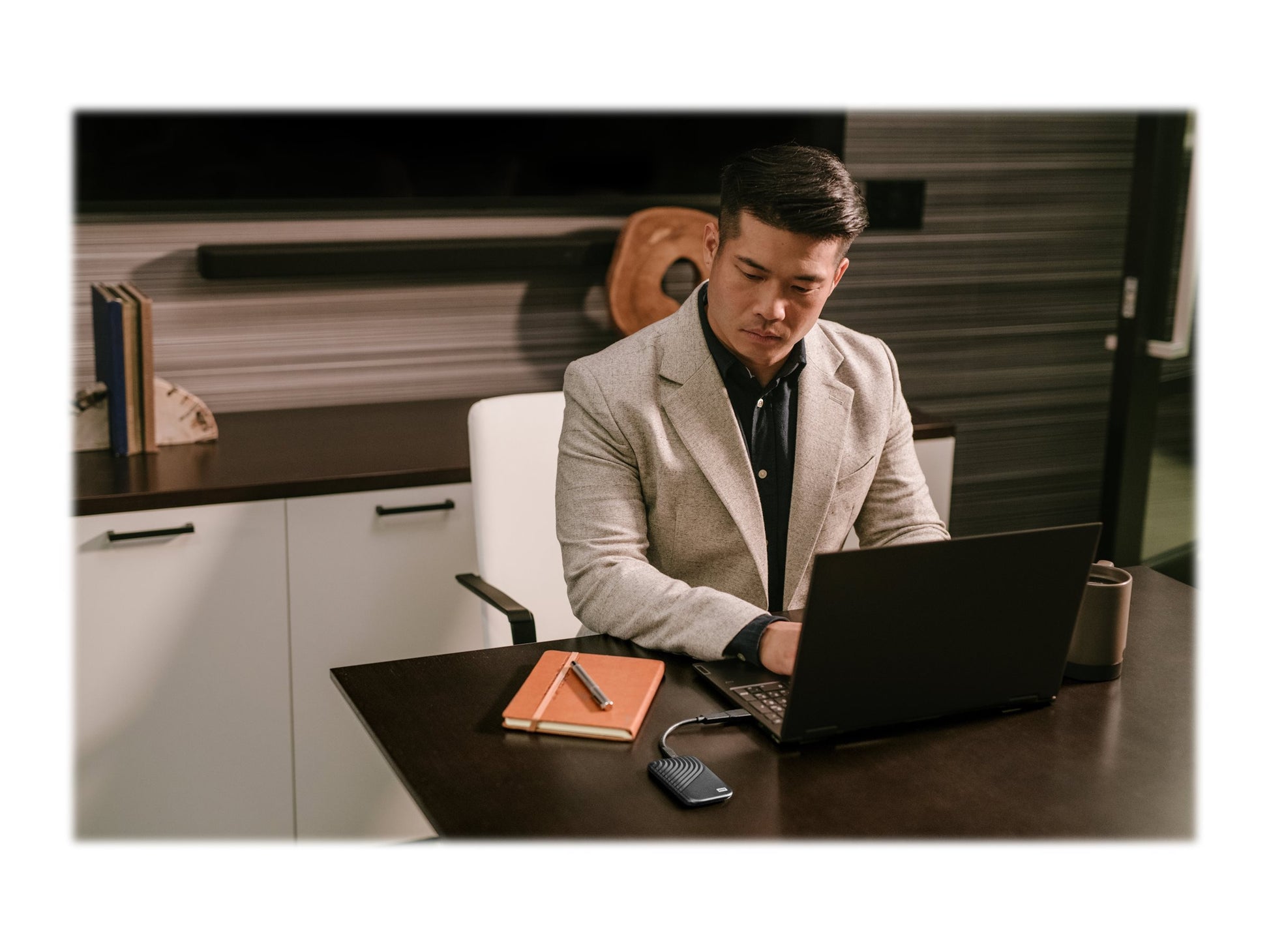 | Save, access and protect the content that matters to you with the My Passport SSD, giving you accelerated read speeds up to 1050 MB/s and write speeds of up to 1000 MB/s with NVMe technology. Help secure your drive and keep productivity flowing with password-enabled 256-bit AES hardware encryption. Resist drops of up to two meters with a sleek, durable metal design that is both shock- and vibration-resistant. Find peace of mind with the fast My Passport drive, able to simply back up your data and compatible with Mac and PC, ready to use right out of the box. | |