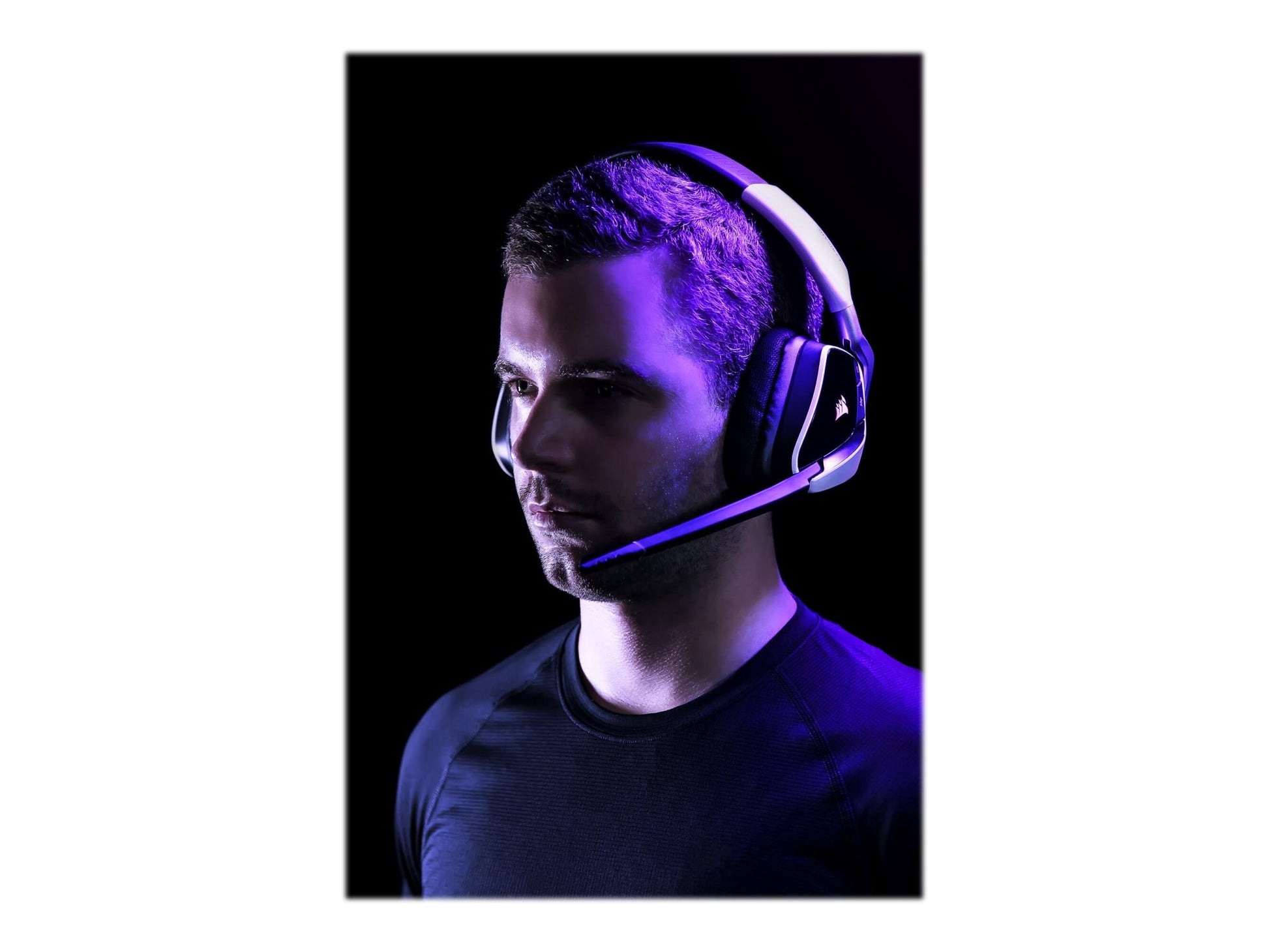 | Immerse yourself in the action with the CORSAIR VOID RGB ELITE Wireless, boasting custom-tuned 50 mm neodymium audio drivers, comfortable microfiber mesh fabric with memory foam earpads, and a 2.4 GHz wireless connection. | |