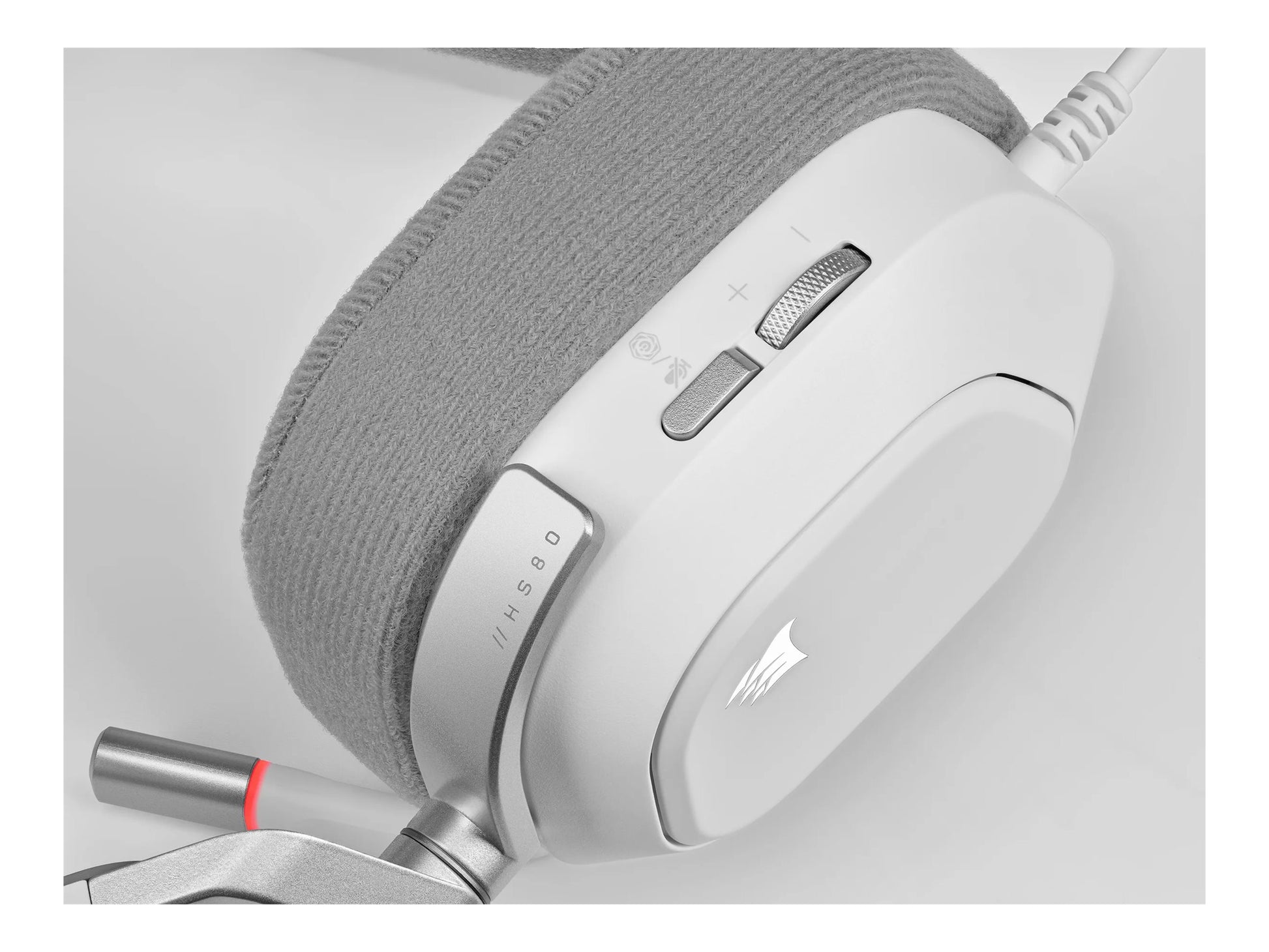 | The CORSAIR HS80 RGB gaming headset delivers incredibly detailed sound through custom-tuned 50 mm neodymium audio drivers. | |