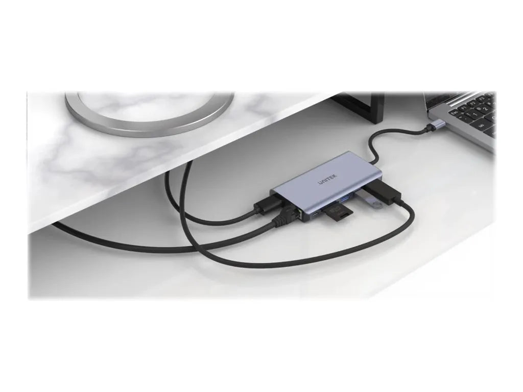 Product Description Unitek uHUB S7+ 7-in-1 USB-C Ethernet Hub with MST Dual Monitor, 100W Power Delivery and Card Reader - docking station - USB-C - HDMI, DP - 1GbE