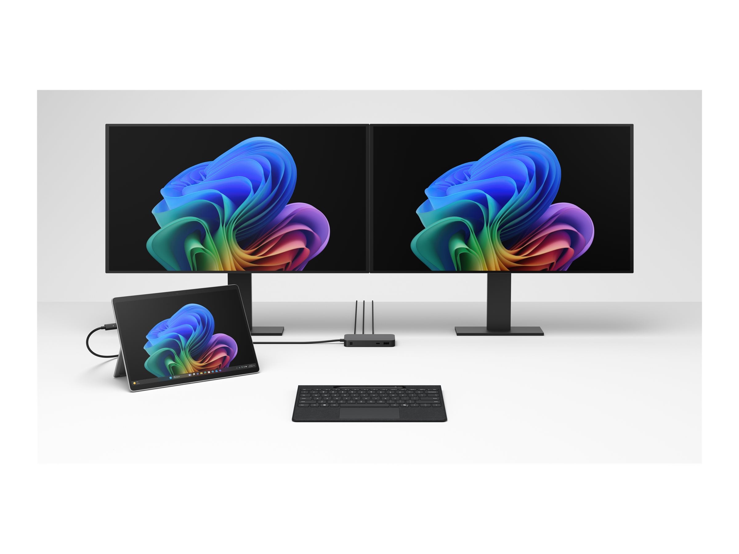 The Microsoft Surface Pro Copilot+ PC for Business combines a powerful 13-inch OLED touchscreen display with a native resolution of 2880 x 1920 and a 120 Hz refresh rate for smooth visuals. This versatile device features Dolby Atmos-compliant stereo speakers and a dual array microphone to enhance audio experiences during video calls and presentations. It is designed for professionals needing both portability and productivity, equipped with an 8-core Intel Core Ultra 7 processor and 12 MB cache memory, making multitasking seamless and efficient.
