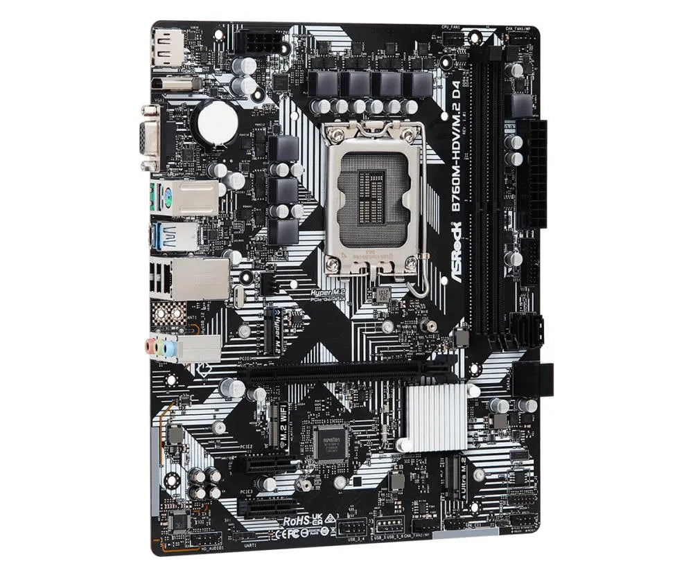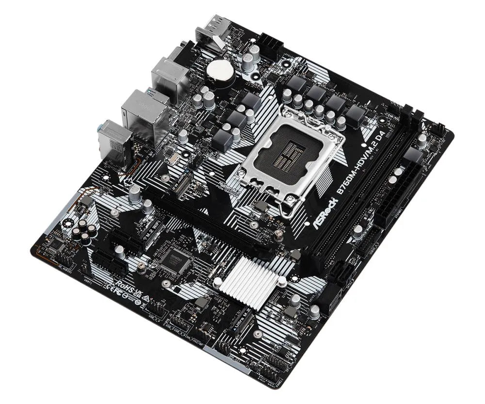 | Summary | Asrock B760M-HDV/M.2 D4. Processor manufacturer: Intel, Processor socket: LGA 1700, Compatible processor series: Intel® Core™ i3, Intel® Core™ i5, Intel® Core™ i7, Intel® Core™ i9. Supported memory types: DDR4-SDRAM, Maximum internal memory: 64 GB, Memory slots type: DIMM. Supported storage drive interfaces: M.2, SATA III, RAID levels: 0, 1, 5, 10. Ethernet interface type: Gigabit Ethernet, LAN controller: Realtek RTL8111H. Component for: PC, Motherboard form factor: micro ATX, Motherboard chipset family: Intel kg |