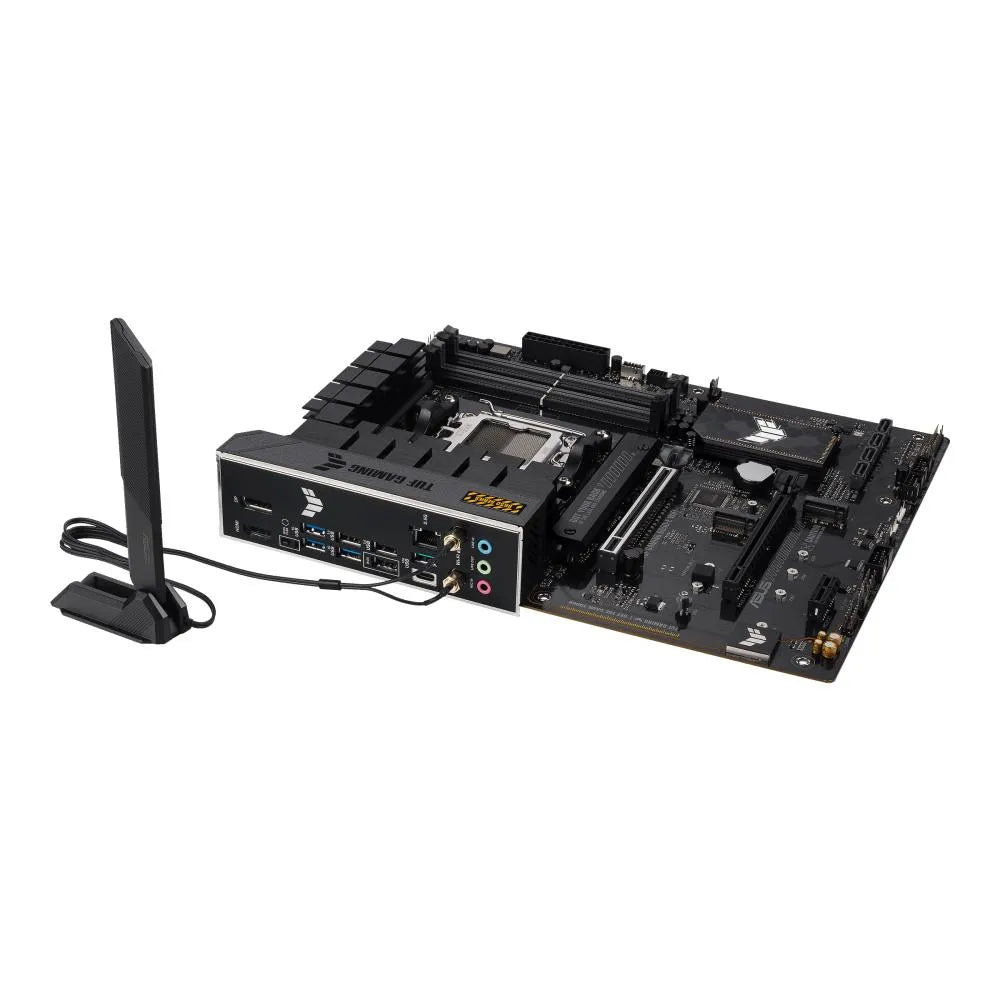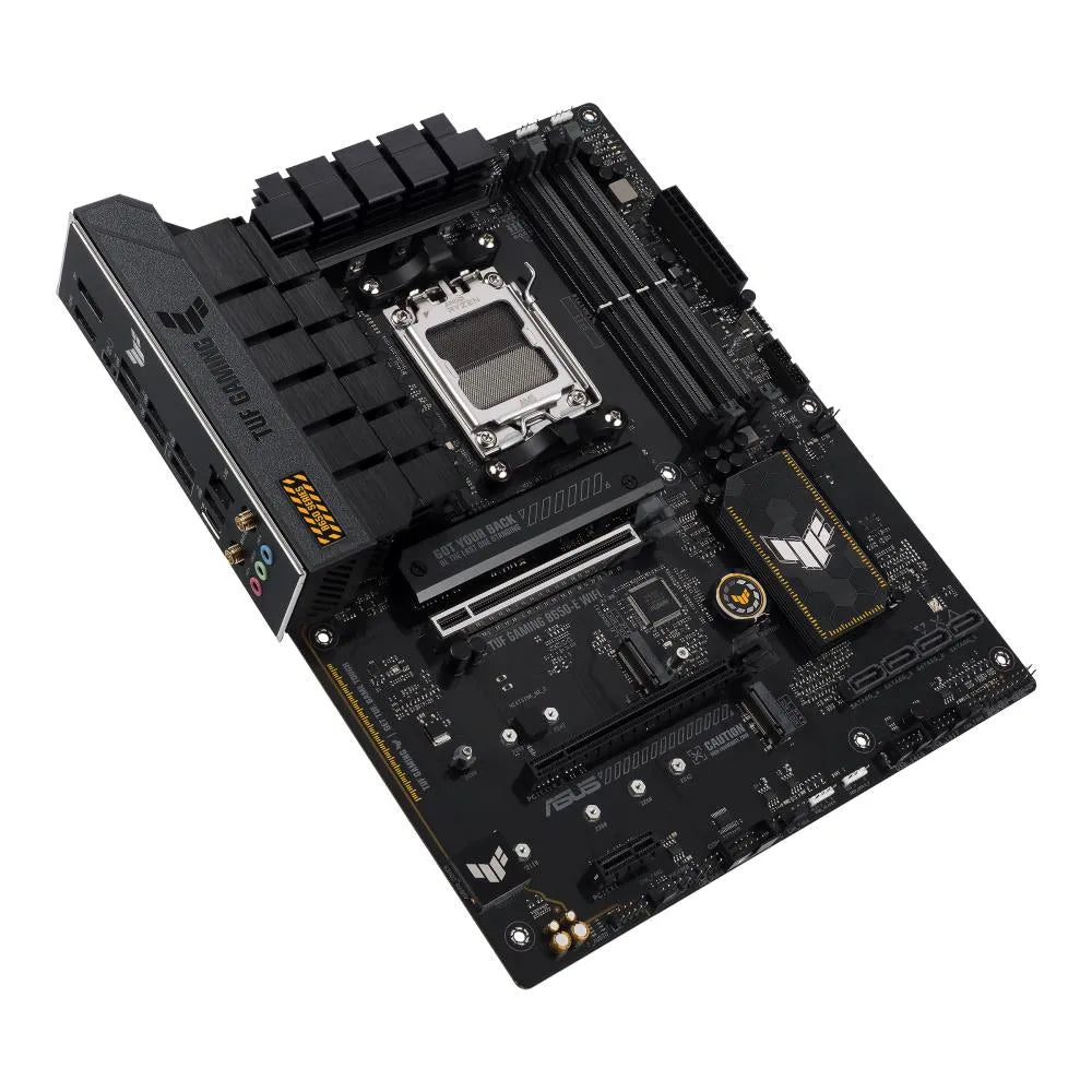 ASUS TUF GAMING B650-E WIFI takes all the essential elements of the latest AM5 Socket for AMD Ryzen™ Desktop Processors and combines them with game-ready features and proven durability. Engineered with military-grade components, an upgraded power solution and a comprehensive cooling system, this motherboard goes beyond expectations with rock-solid and stable performance for marathon gaming. TUF GAMING motherboards also undergo rigorous endurance testing to ensure that they can handle conditions where others may fail. Aesthetically, this model incorporates rugged off-black and geometric design elements to reflect the dependability and stability that defines the TUF GAMING series.