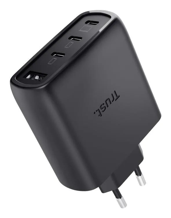 | Summary | Trust Maxo 65W. Charger type: Indoor, Power source type: AC, Charger compatibility: Universal. Maximum output voltage: 20 V. USB Type-C ports quantity: 3, Fast charging, Power protection features: Overheating, Overload, Short circuit. Cable length: 2 m, Product colour: Black |