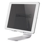 The Neomounts by Newstar DS15-050SL1 is a stand for smartphones and tablets up to 11?. The clever tilt option (90°) allows the stand to change to the ideal viewing angle. The tablet stand is ideal for hands-free video calling, watching a movie or playing a game. Thanks to the open configuration, the charging port remains accessible and charging wires can be routed to the back of the stand.The lightweight, compact design makes the stand ideal to take with you wherever you want. The anti-skid silicon pads and safety ledge stopper ensure solid positioning of your tablet.