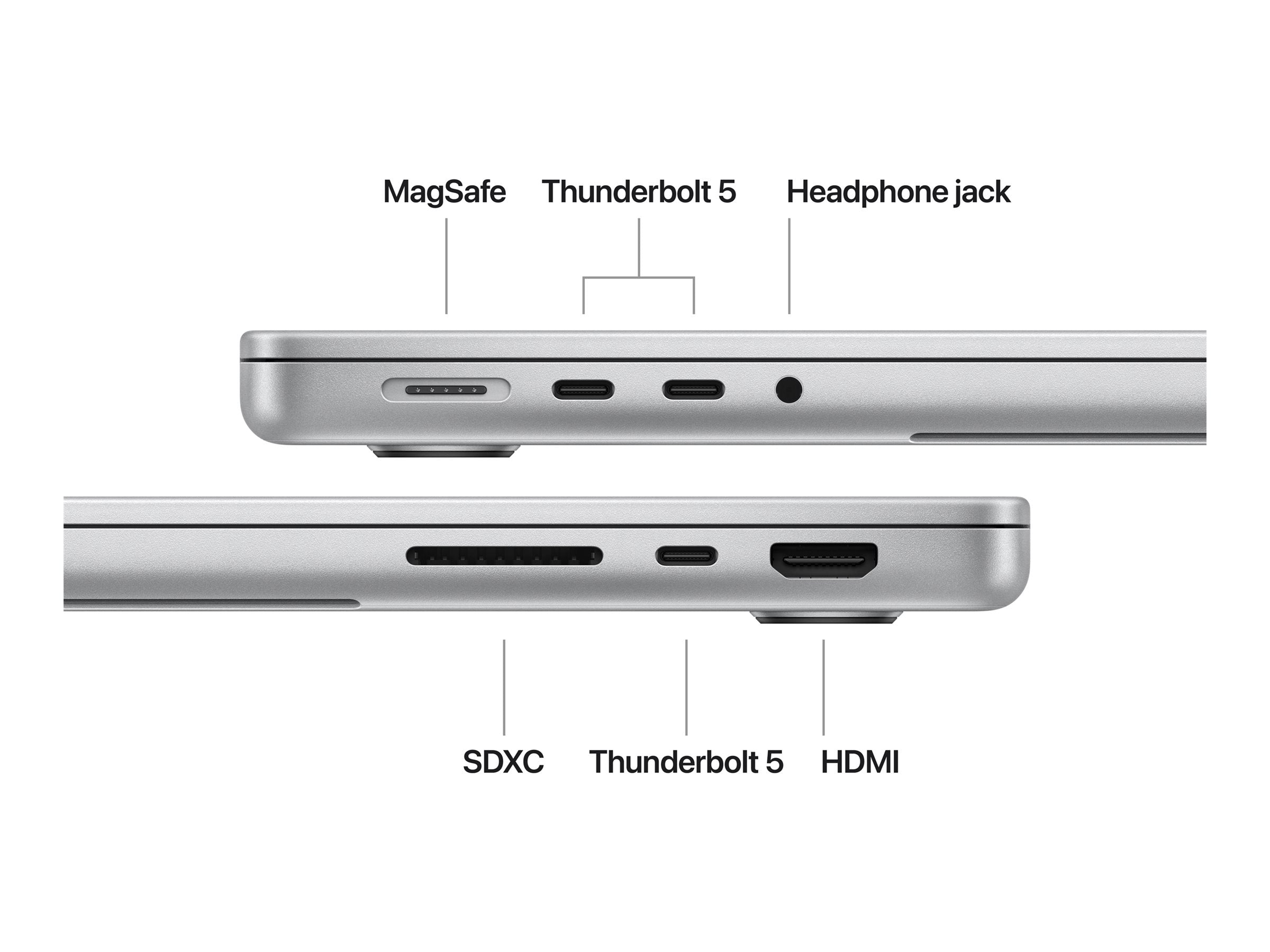 Apple MacBook | Pro | Silver | 14 " | 3024 x 1964 pixels | Apple M4 Pro | 24 GB | Solid-state drive capacity 512 GB | Apple M4 Pro chip 12-core CPU/16-core GPU | macOS | 802.11ax | Bluetooth version 5.3 | Keyboard language Russian | Keyboard backlit...