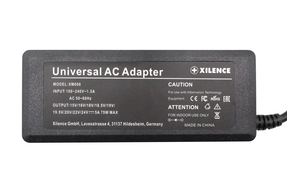 When looking at the lightweight and extremely slim Xilence notebook PSU, it does not reveal its powerful interior. Nevertheless, the slim power pack has power with a stable output voltage of 24V. It achieves a remarkable eciency of over 85%. The compact power pack includes eleven plug adaptors in order to supply the most popular notebooks and netbooks with power. The integrated LED display shows information on the output voltage at all times. Full-range allows the power supply to be used worldwide. The PSU reliably operates at input voltages between 100V and 240V.