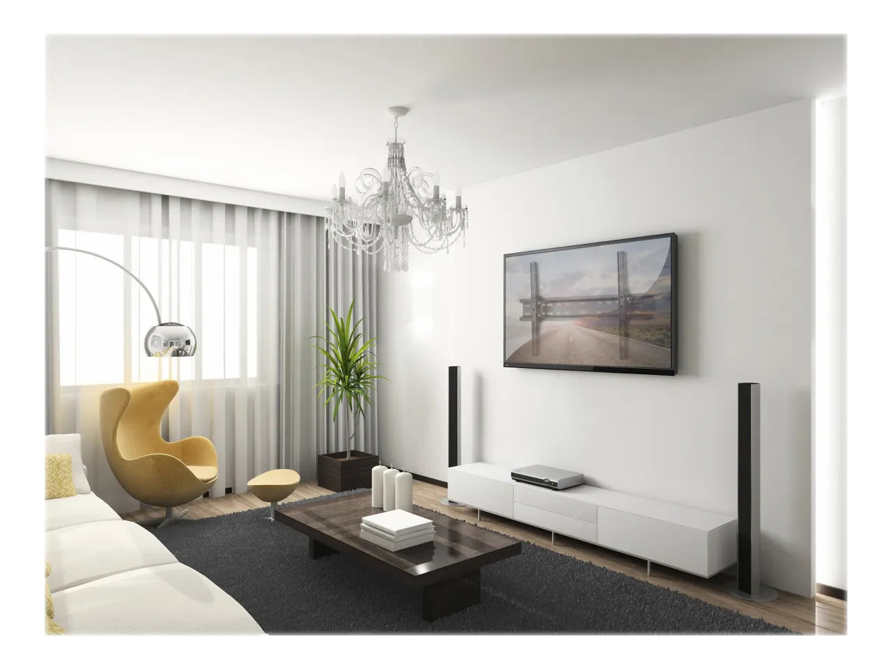 Super slim design sits just 50mm from wall to complement the sleek look of ultra-thin TVs. It allows the TV to slide left and right on the wall plate, so it's positioned exactly where you want it. The powder coating finish guarantees the durability and the simple construction is easy to install.
