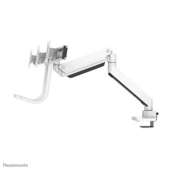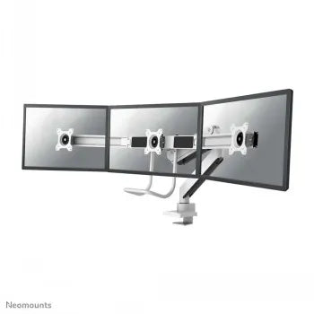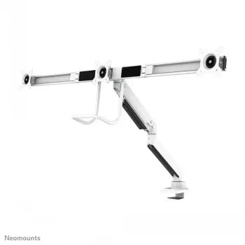 Īss kopsavilkums Neomounts by Newstar Select NM-D775DX3WHITE Full Motion Dual Desk Mount (clamp & grommet) with crossbar and handle for three 17-27" Monitor Screens, Height Adjustable (gas spring) - White