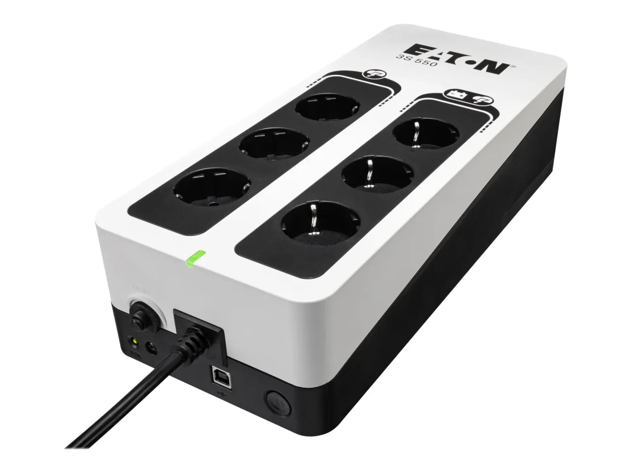 | Citas funkcijas | Software compatibility: Eaton UPS Companion (enables safe system shutdown, energy usage metering and configuration of UPS settings) |