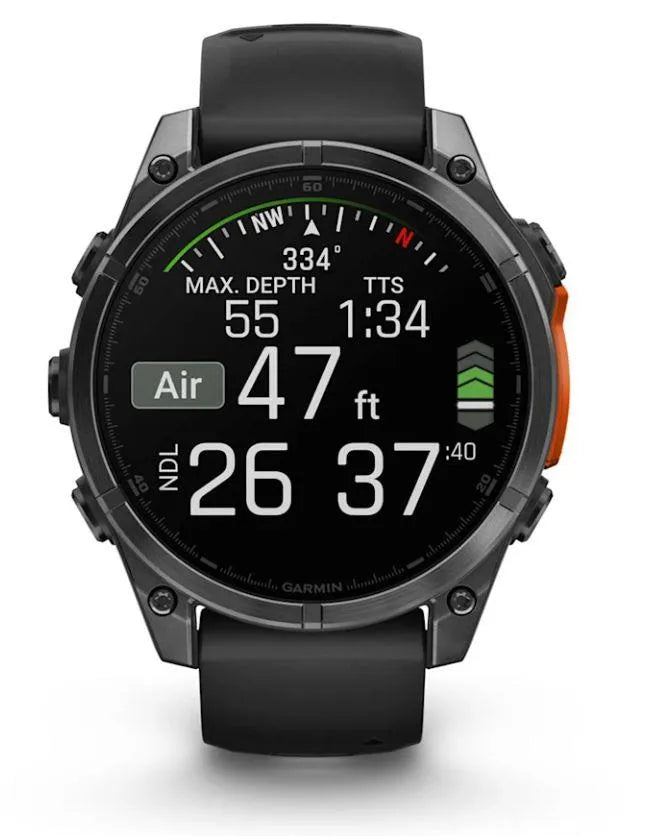 For serious athletes and adventurers who want to push beyond their limits, this premium multisport GPS smartwatch is built to perform — with advanced strength training features, dive capability, an internal speaker and mic for voice features, a built-in LED flashlight and compact styling for smaller wrists.