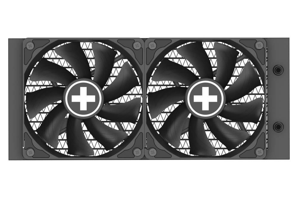 Available as black 240mm version with ARGB illuminated pump head and 2x FDB fans.