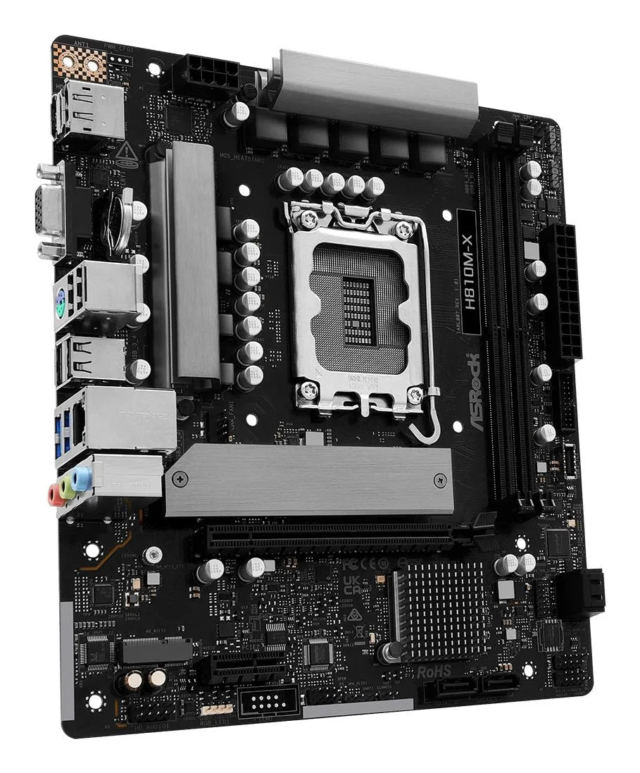 | Summary | Asrock H810M-X. Processor manufacturer: Intel, Processor socket: LGA 1851 (Socket V1), Compatible processor series: Intel Core Ultra (Series 2). Supported memory types: DDR5-SDRAM, Maximum internal memory: 128 GB, Memory slots type: DIMM. Supported storage drive interfaces: M.2, SATA III, Supported storage drive types: HDD & SSD. Ethernet interface type: 2.5 Gigabit Ethernet, LAN controller: Dragon RTL8125BG. Component for: PC, Motherboard form factor: micro ATX, Motherboard chipset family: Intel kg |