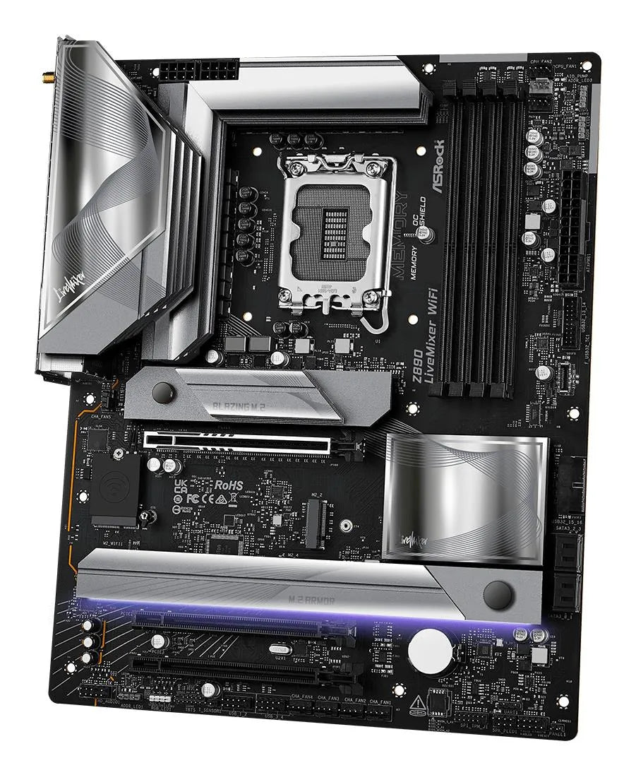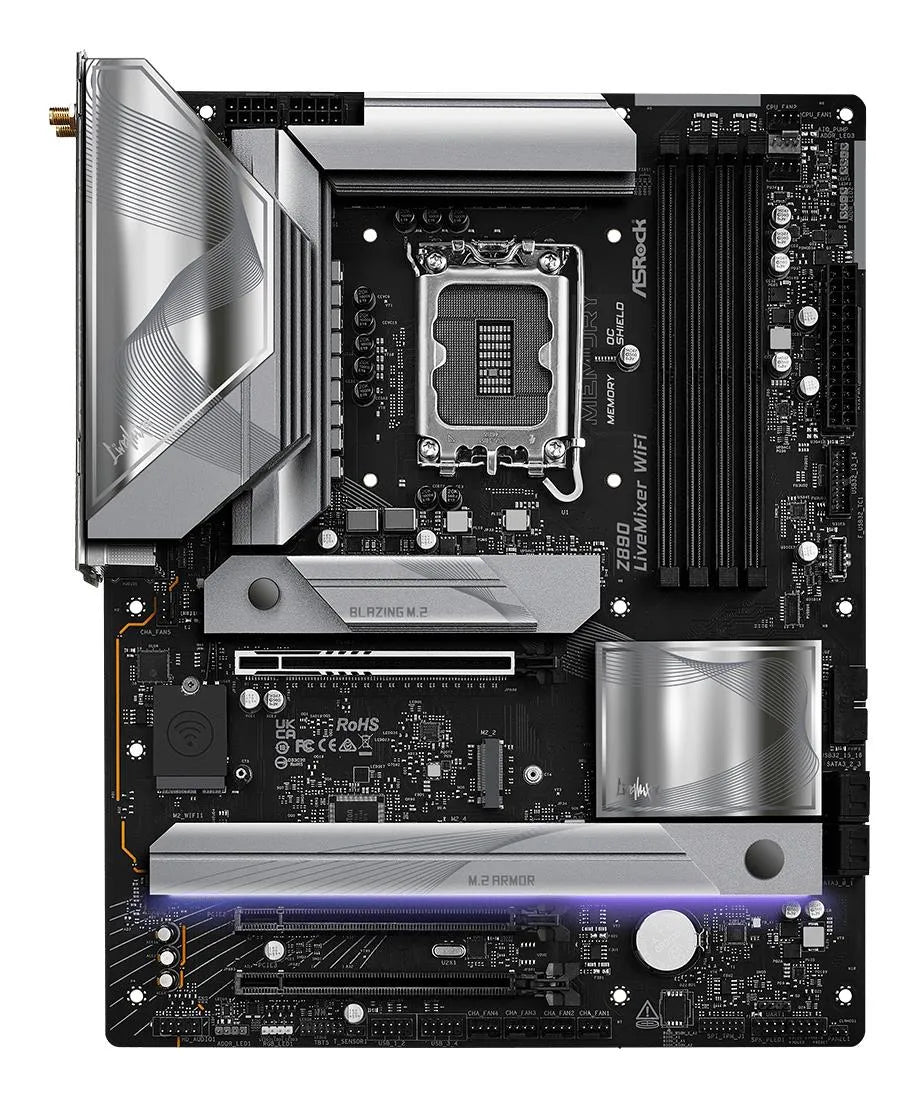 | Summary | Asrock Z890 LiveMixer WiFi. Processor manufacturer: Intel, Processor socket: LGA 1851 (Socket V1), Compatible processor series: Intel Core Ultra (Series 2). Supported memory types: DDR5-SDRAM, Maximum internal memory: 256 GB, Memory slots type: DIMM. Supported storage drive interfaces: M.2, SATA III, RAID levels: 0, 1, 5, 10. Ethernet interface type: 2.5 Gigabit Ethernet, Top Wi-Fi standard: Wi-Fi 7 (802.11be), Wi-Fi standards: 802.11a, 802.11b, 802.11g, Wi-Fi 4 (802.11n), Wi-Fi 5 (802.11ac), Wi-Fi 6 (802.11ax), Wi-Fi 6E.... Component for: PC, Motherboard form factor: ATX, Motherboard chipset family: Intel kg |