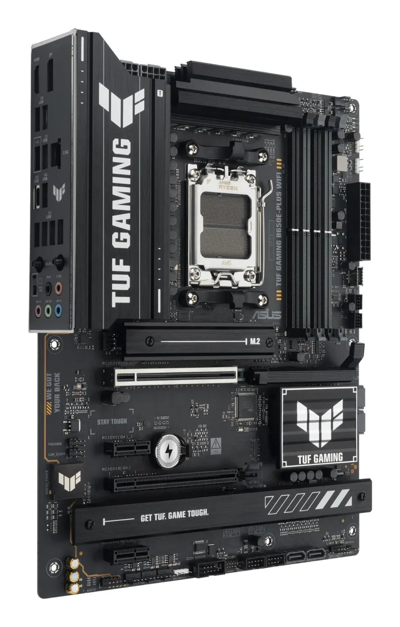 ASUS TUF GAMING B650E-PLUS WIFI takes all the essential elements of the latest AM5 Socket for AMD Ryzen™ Desktop Processors and combines them with game-ready features and proven durability. Engineered with military-grade components, an upgraded power solution and a comprehensive cooling system, this motherboard goes beyond expectations with rock-solid and stable performance for marathon gaming. TUF GAMING motherboards also undergo rigorous endurance testing to ensure that they can handle conditions where others may fail. Aesthetically, this model incorporates rugged off-black and geometric design elements to reflect the dependability and stability that defines the TUF GAMING series. This platform delivers the power and connectivity that advanced AI PC applications demand.