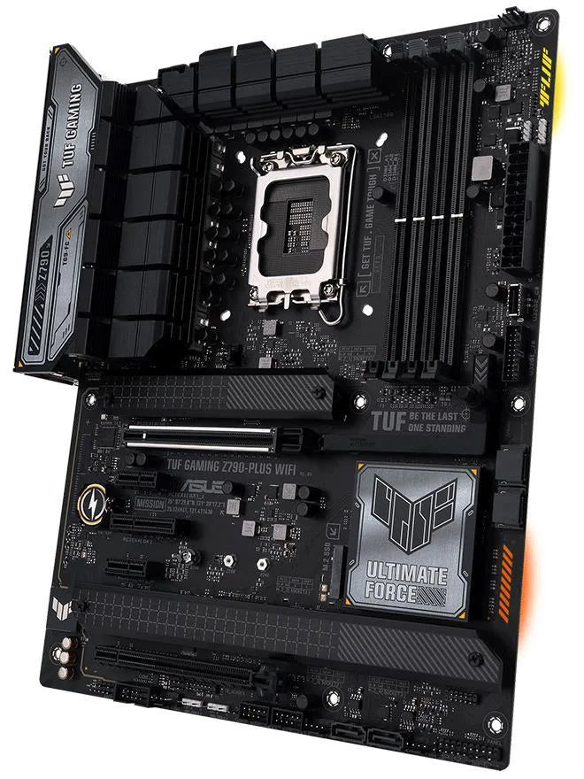 TUF GAMING Z790-PLUS WIFI takes all the essential elements of the latest Intel® processors and combines them with game-ready features and proven durability. Engineered with military-grade components, an upgraded power solution and a comprehensive cooling system, this motherboard goes beyond expectations with rock-solid performance for marathon gaming. TUF GAMING motherboards also undergo rigorous endurance testing to ensure that they can handle conditions where others may fail. Aesthetically, this model incorporates an embossed nameplate and geometric design elements to reflect the dependability and stability that defines the TUF GAMING series.