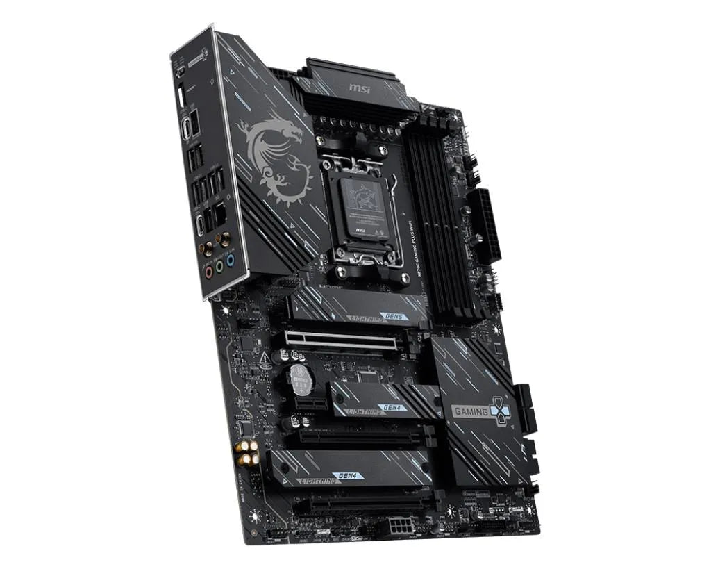 X870E GAMING PLUS WIFI is designed with durable components to provide great gaming experience. Designed with Wi-Fi 7 and 5G LAN, high-speed USB4, PCIe 5.0 solutions, Supplemental PCIe Power and exclusive EZ DIY features, it's ready for 24/7 non-stop gaming of AMD Ryzen™ 9000 series processors.