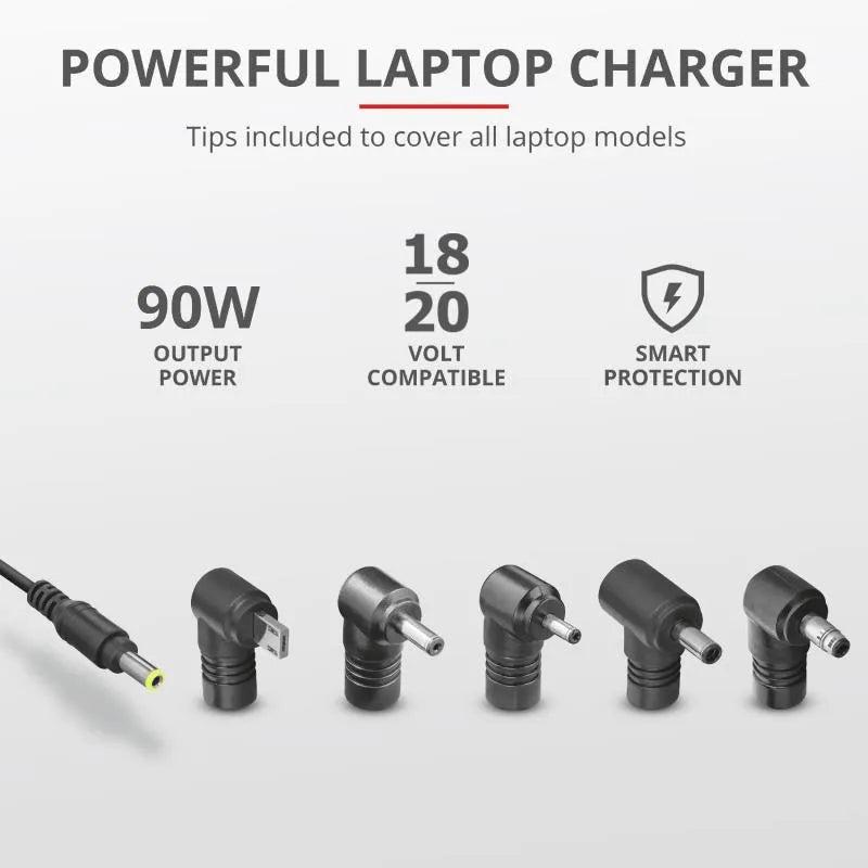 - Compatible with laptops that require 18-20 Volt and 90 Watt power or less
