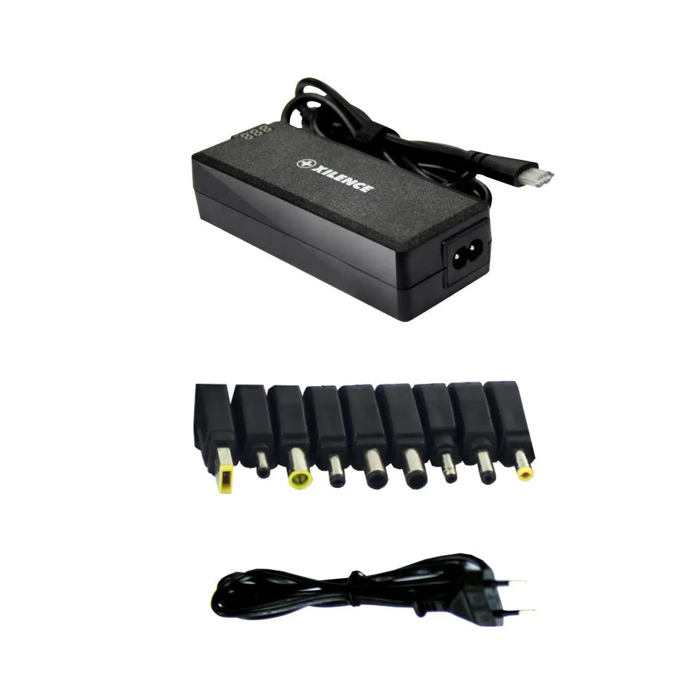 When looking at the lightweight and extremely slim Xilence notebook PSU, it does not reveal its powerful interior. Nevertheless, the slim power pack has power with a stable output voltage of 24V. It achieves a remarkable eciency of over 85%. The compact power pack includes eleven plug adaptors in order to supply the most popular notebooks and netbooks with power. The integrated LED display shows information on the output voltage at all times. Full-range allows the power supply to be used worldwide. The PSU reliably operates at input voltages between 100V and 240V.