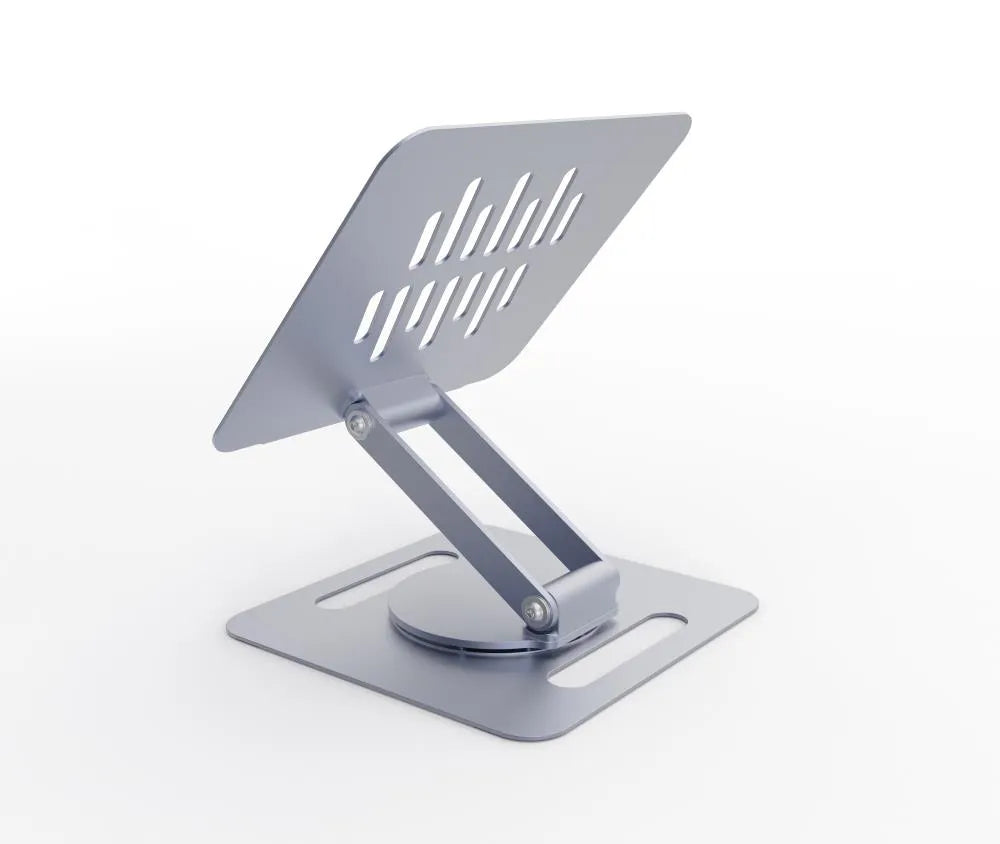 • Foldable rotating metal notebook riser stand with stepless height adjustment