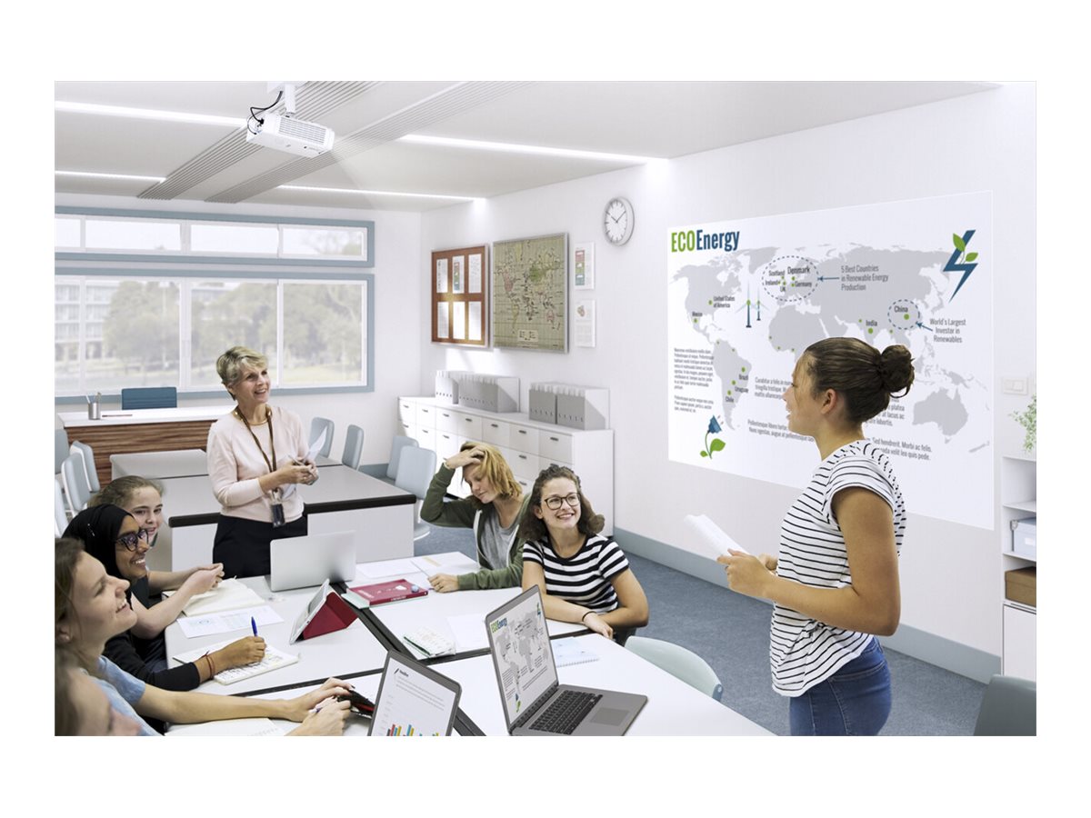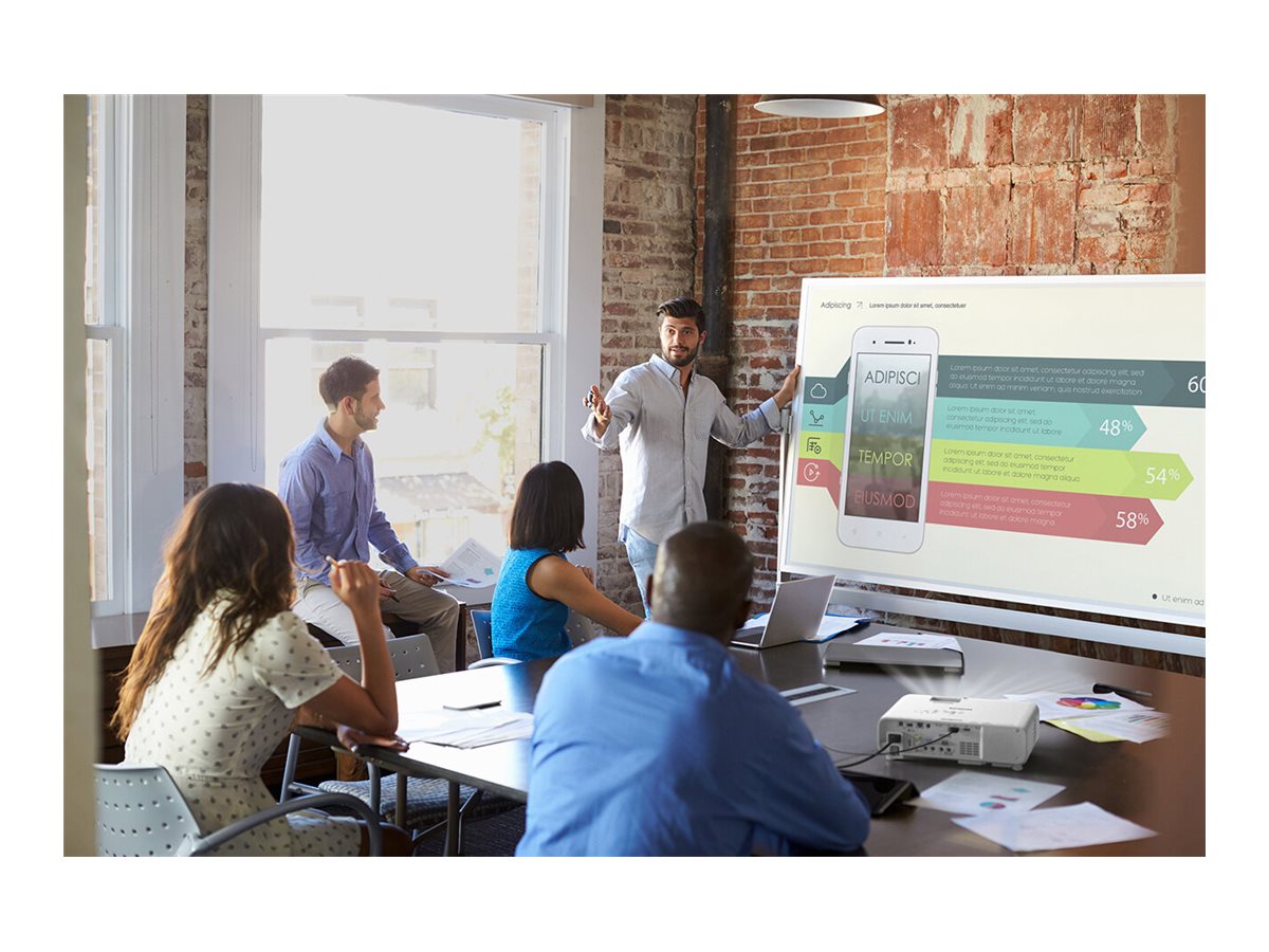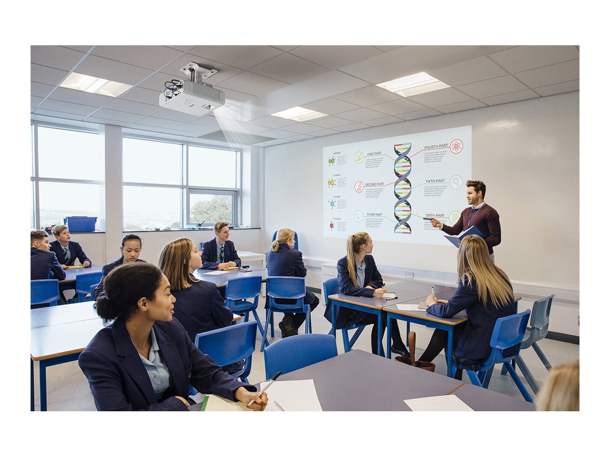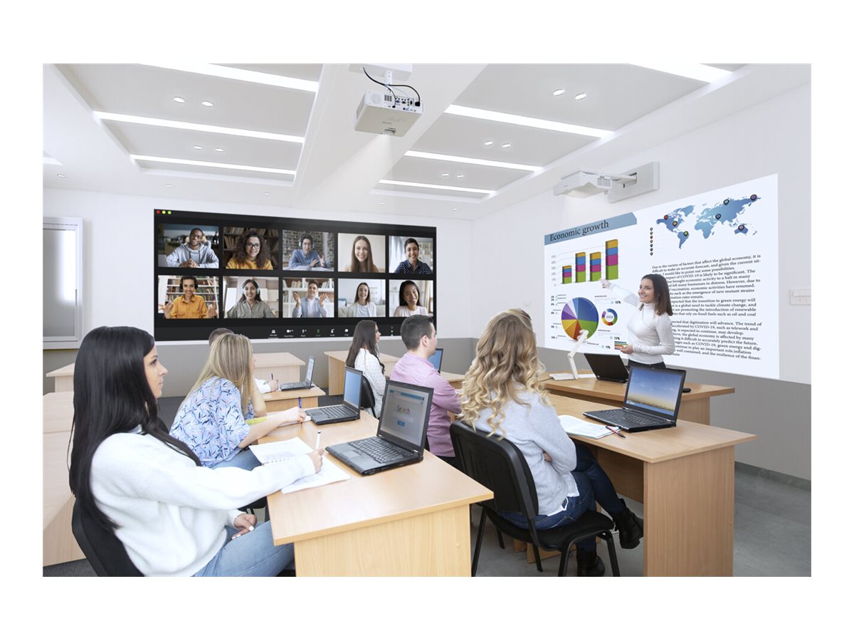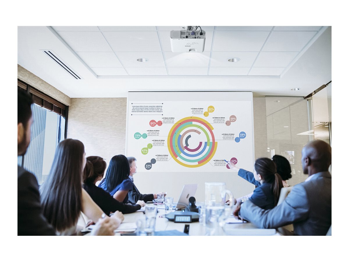 | Deliver Full HD content easily through a scalable display delivering of up to 310 inches combined with stream and share connectivity. Combined with advance features, the EB-L260F is an entry-level Full HD wireless laser projector the ideal solution for any working environment. It offers 4,600 lumens brightness, a range of wireless and wired connectivity and the ability to have a scalable display size of up to 310 inches. | |
