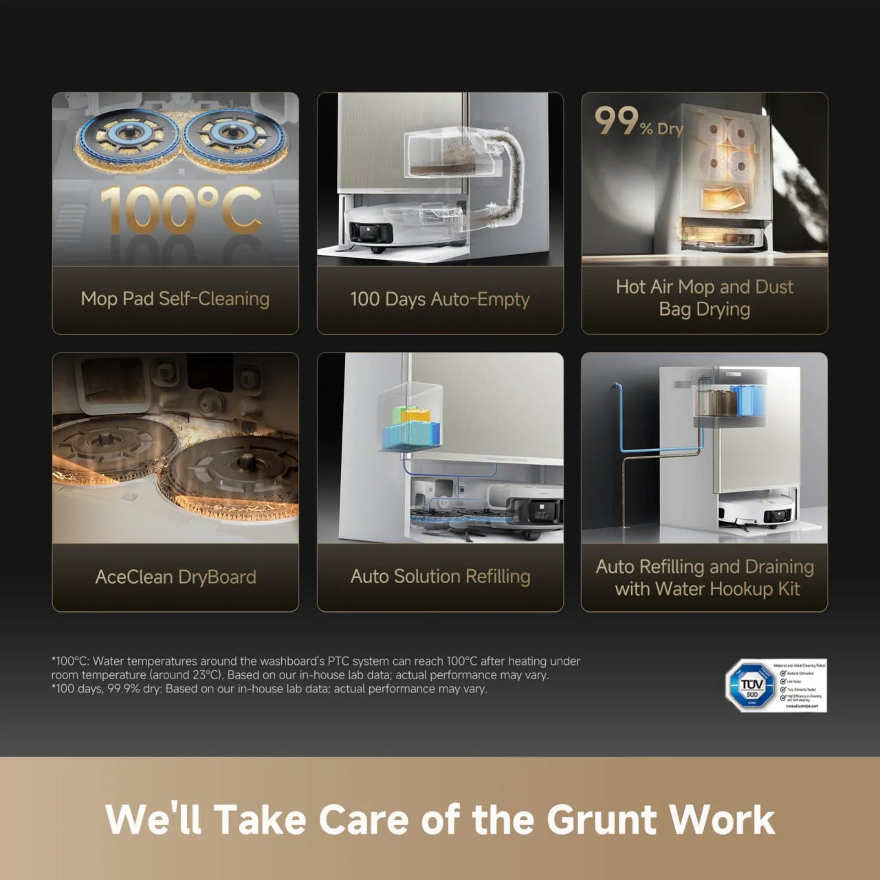 - Performs independent self-care with 100℃* high-temperature mop washing and washboard self-cleaning