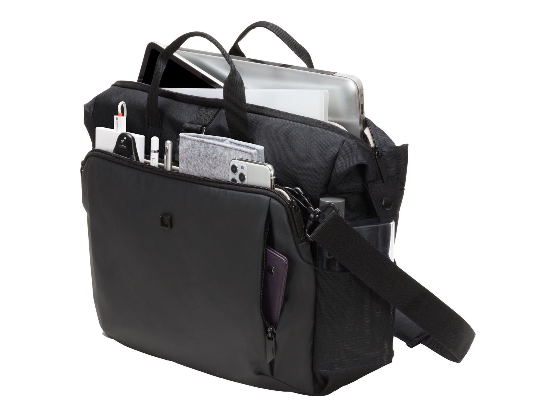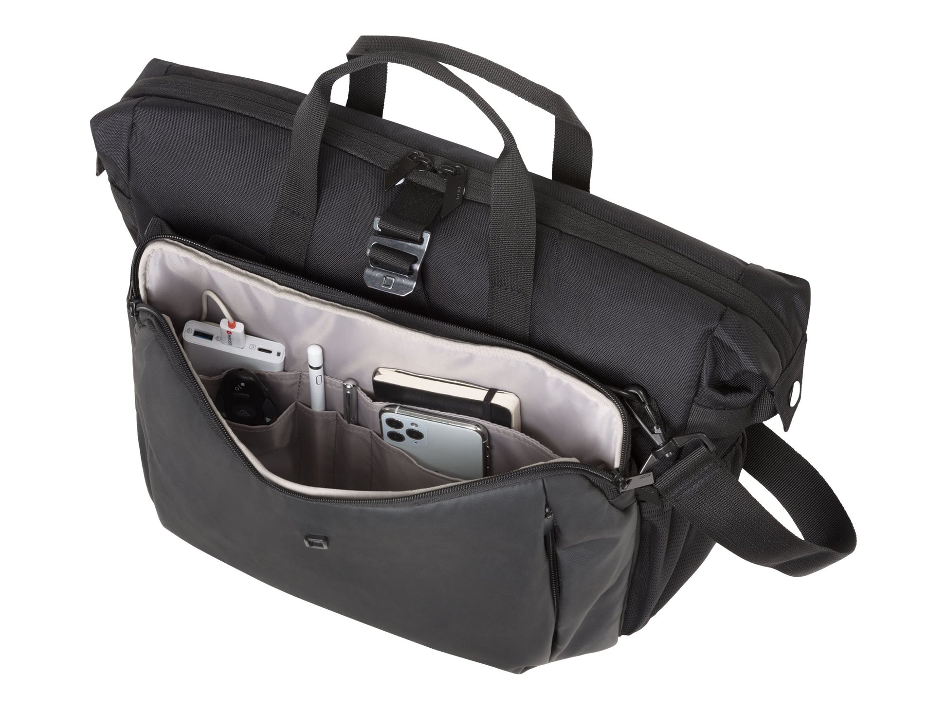 | The Eco Top Traveler GO offers ideal protection for laptops. The fit all system separating wall in the notebook compartment lies protectively across your notebook and fits automatically to sizes from 13 to 15.6". The slip pocket provides reliable protection for tablets up to 12.9". The spacious main section is divided so that documents and accessories can be stored separately. Open expandable compartment for active gear such as sport shoes, helmet, yoga mat, etc. including elastic mesh side pockets and metal hook for fixation. The front pocket has practical compartments so you can organize mobile accessories like smartphone, pens or chargers. There is a document compartment at the back for easy storage of documents. Carry the bag comfortably with the handles or use the adjustable, padded shoulder strap. The bag is made of water-repellent material to protect the contents even on rainy days. The Eco Top Traveler GO is therefore perfect for you if you are always on the go and want to support the recycling of PET bottles with an eco-friendly bag. | |