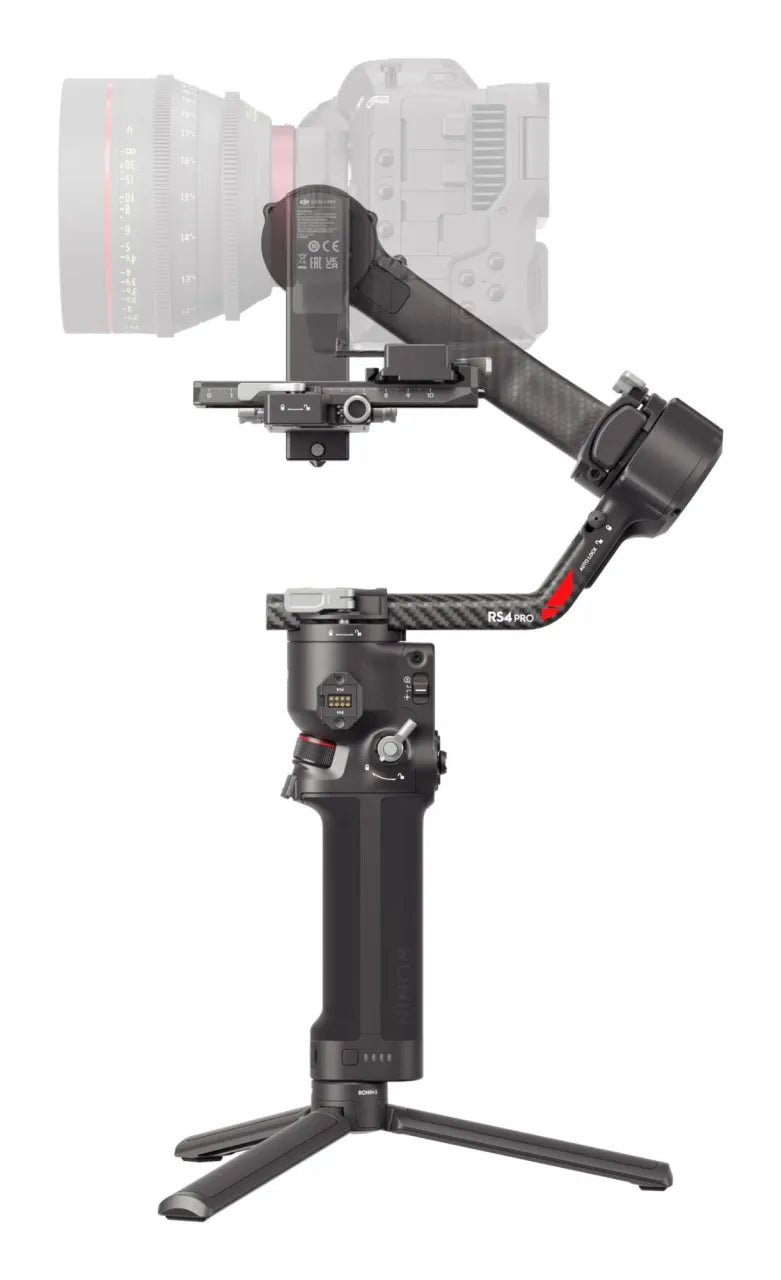 | Summary | DJI RS 4 Pro. Type: Hand camera stabilizer, Material: Carbon fibre, Product colour: Black. Controllable pan range: 0 - 360°, Controllable tilt range: -112 - 214°, Controllable roll range: -95 - 240°. Battery technology: Lithium Polymer (LiPo), Battery capacity: 1950 mAh, Operating time: 13 h. Weight: 1.22 kg, Width: 223 mm, Depth: 416 mm. Cables included: USB kg |