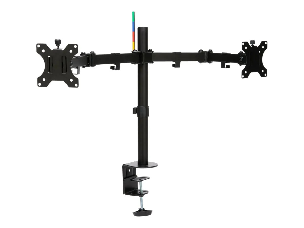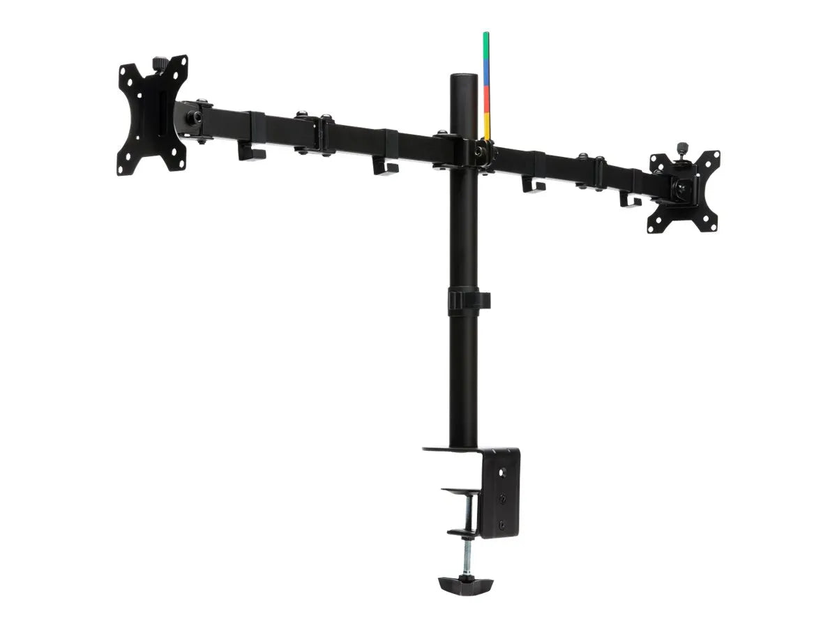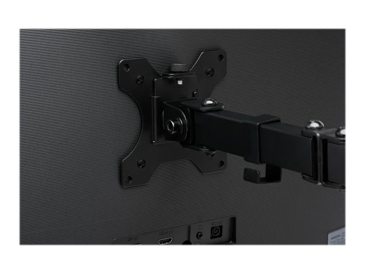 | Finding the correct ergonomic height for your monitors and adjusting their distance is easy, thanks to the sturdy, stable, SmartFit Ergo Dual Extended Monitor Arm. Clear valuable desk space while improving ergonomics. Wide adjustment range delivers ±90° swivel, ±180° rotation (for landscape or portrait orientation), ±45° monitor tilt adjustment, and up to 399mm/15.7" arm extension. Sturdy metal C-clamp and grommet fastener are easy to install and won't damage or mark the desk or table. Each arm is compatible with displays up to 32" and 8kg/17.6lbs. |