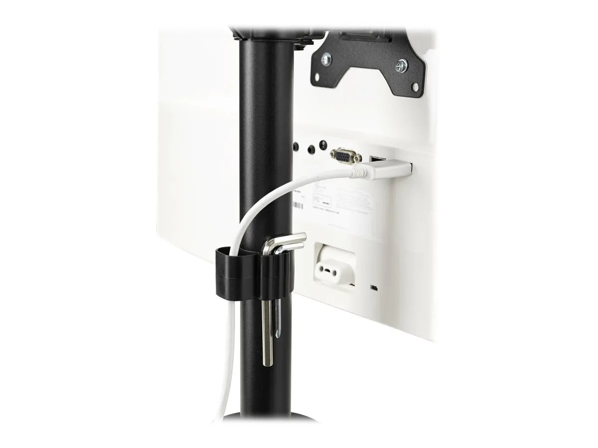 - Detachable VESA 75/100 plates rotate ±180° for landscape or portrait orientation of each monitor