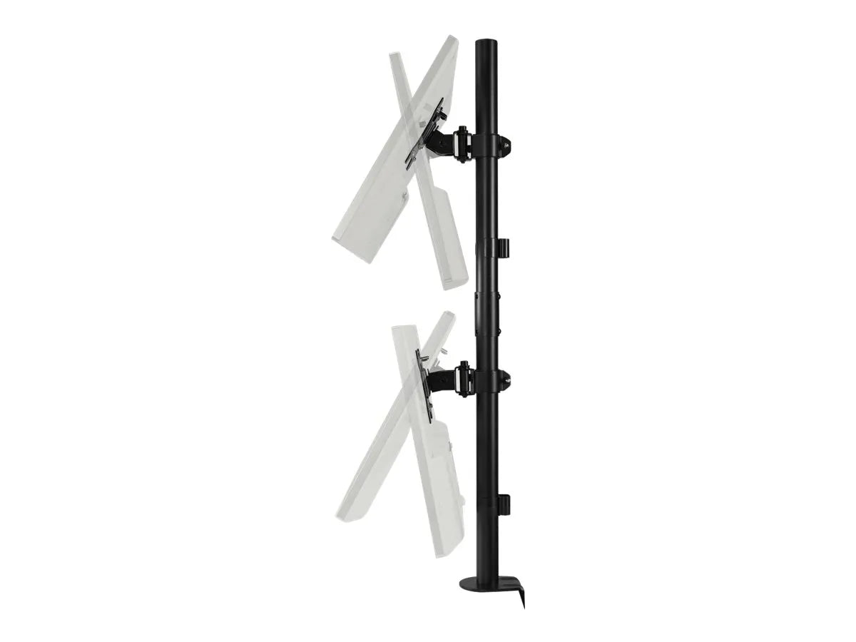 - Stacked monitor arrangement maximizes desk space by allowing two monitors in a single footprint