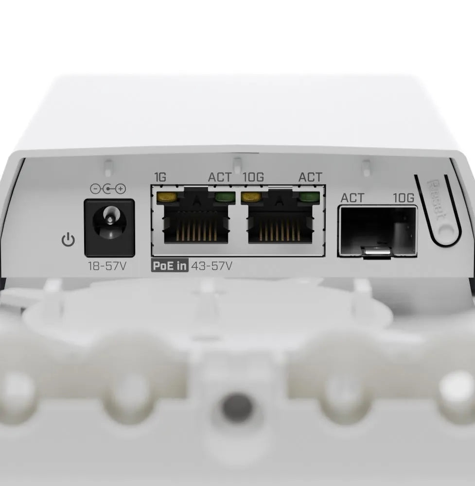 A weatherproof IP55 Fiber-to-Copper converter to transform your 10 Gigabit SFP+ fiber connections into RJ45 10 Gigabit Ethernet. FTC11XG offers low power consumption (9-10 W) and two ways of powering: a standard DC jack & 802.3 af/at/bt 43-57 V PoE-In. It comes with a PoE injector, a power supply, and everything you need to secure it on a ceiling. FTC11XG runs a full version of SwOS Lite, and has its own switch-chip, allowing you to perform a variety of tasks you would never expect from a regular media converter! Here are some of them: Interface management and monitoring; VLAN support; SNMP reporting; Basic traffic shaping; And even advanced packet filtering with Access Control List - a powerful network tool that allows packet filtering, accounting, and VLAN tagging based on Layer 2, 3, and 4 protocol header field conditions.