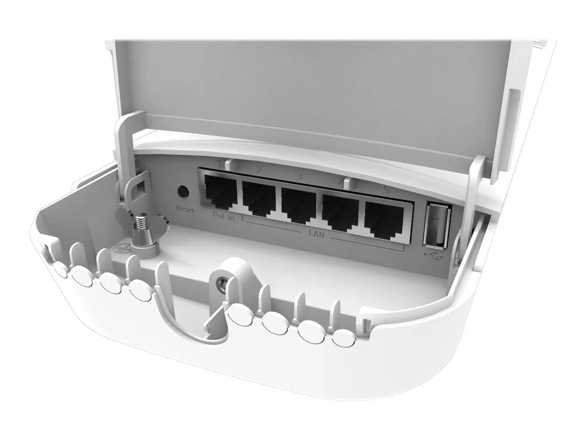 | OmniTIK 5 PoE ac features five Gigabit Ethernet ports and support for 802.11ac. It's equipped with a powerful CPU, high-capacity RAM, high power 802.11a/n/ac Dual Chain wireless (support for AC as well as backwards compatible with regular 802.11a/n CPE) and comes with a weatherproof outdoor enclosure, two integrated omni antennas, a power supply, a PoE injector and a mounting kit. It also supports passive or standard 802.3at/af PoE input/output. Ethernet ports 2-5 can power other PoE capable devices with the same voltage as applied to the unit. Less power adapters and cables to worry about! It can power af/at mode B compatible devices. | |