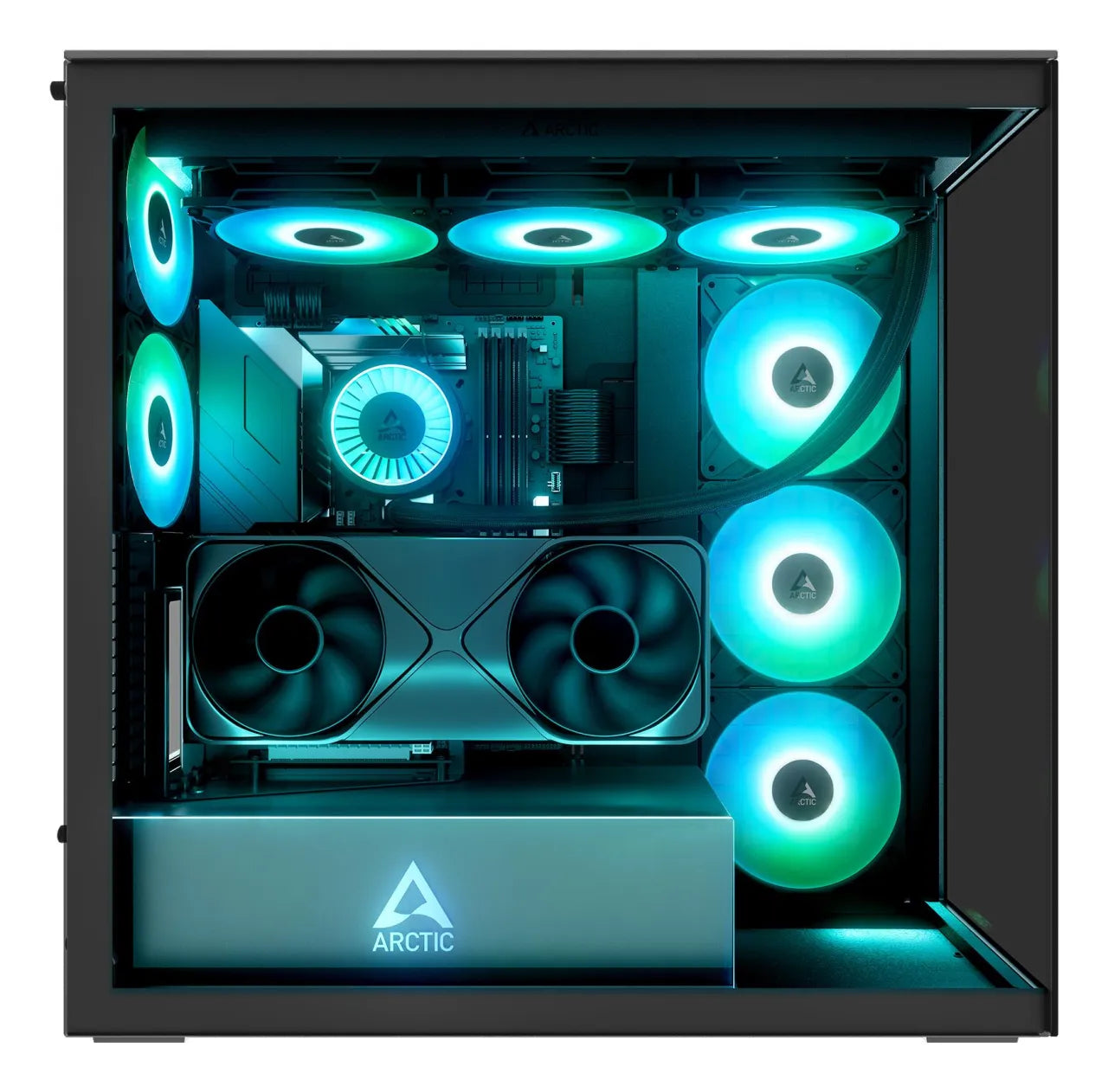 Supports two 420, 360, 280 or 240 mm radiators for high-performance AIOs and custom loops.
