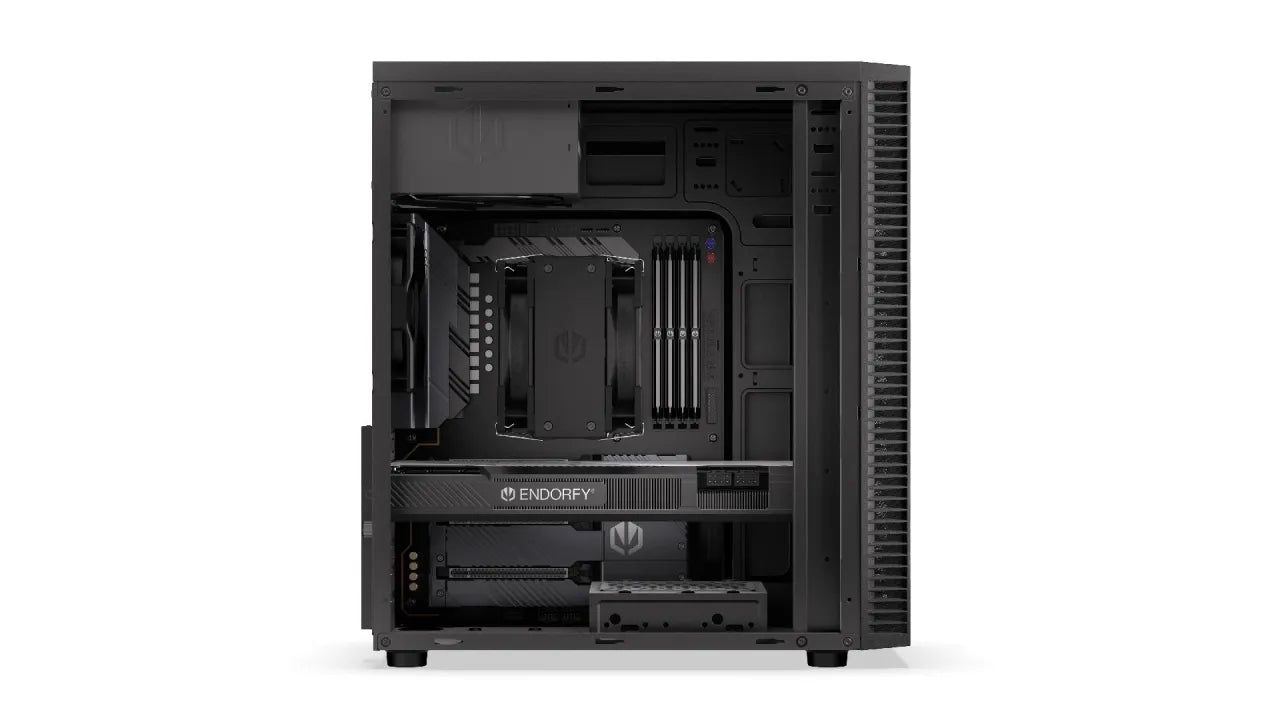 Summary ENDORFY Armis 100 Solid. Form factor: Tower, Type: PC, Product colour: Black. Front fans diameters supported: 120,140 mm, Rear fans installed: 1x 120 mm, Rear fans diameters supported: 120 mm. Supported HDD sizes: 2.5,3.5,5.25", Compatible memory cards: MicroSD (TransFlash), SD. Width: 423 mm, Depth: 200 mm, Height: 388 mm kg