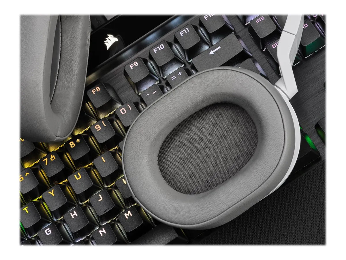 | The CORSAIR HS55 STEREO Gaming Headset delivers essential all-day comfort and sound quality with memory foam leatherette ear pads, lightweight construction, and custom-tuned 50 mm neodymium audio drivers. | |