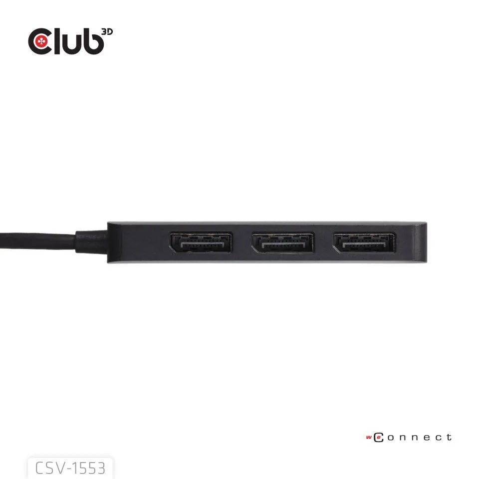 The CSV-1553 is a MST hub to DisplayPort™. This USB-C MST hub is designed to cater for your most versatile connectivity demands, such as Mobile Phone, Tablet, laptop, etc. with a USB Type-C output which supports DP™ Alt-Mode as Host to 3 DisplayPort ports with Ultra High Definition support. It supports DP2.1 AltMode and will allow you to output one Display with max capability of a single 8K30Hz or dual displays of 8K30Hz + 4K144Hz support or triple displays of 4K60Hz Each. It supports on all DisplayPort Alternate Mode supported USB Type-C or Thunderbolt4 compatible devices. Give your Phone, Ultrabook more displays. Phones, Ultrabooks and notebooks are increasingly becoming more powerful and smaller in the physical form factor. With a single USB Type-C DisplayPort Supported port available you can now drive up to 3x Displayport™ screen simultaneously . All it needs is a free USB Type-C with DP™ Alt-Mode on your Phone, Laptop or Ultrabook to connect to the MST hub and will provide you with unparalleled connection options for Triple 4K60Hz displays. The setup is easy and simple to do, provided your system supports this function.