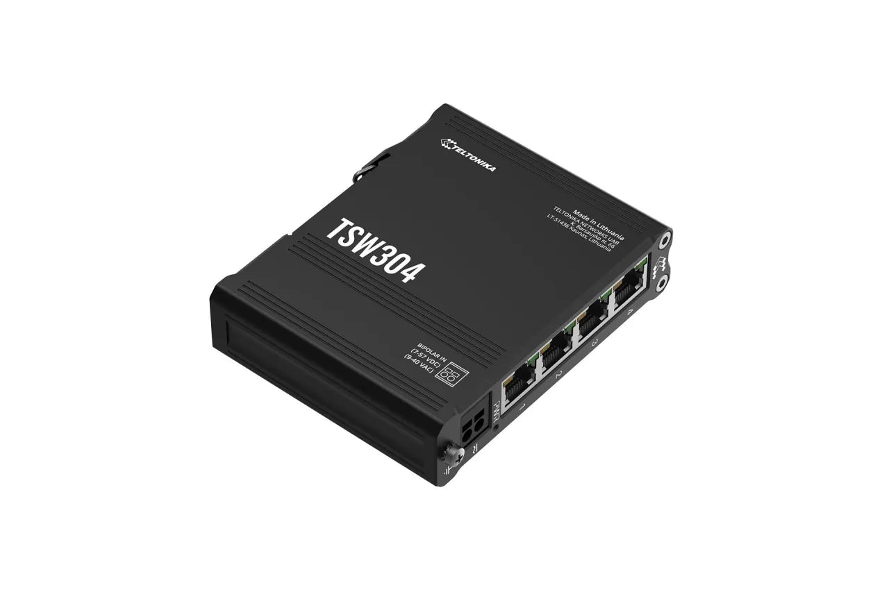 TSW304 is the tiniest Ethernet switch in the Teltonika Networks portfolio, made with the industrial application scenarios in mind. This ultra-small device comes with an integrated DIN rail mounting option and will easily find its place in any server cabinet. Durable design and shock-resistant casing make it perfect for even the most challenging industrial environments.