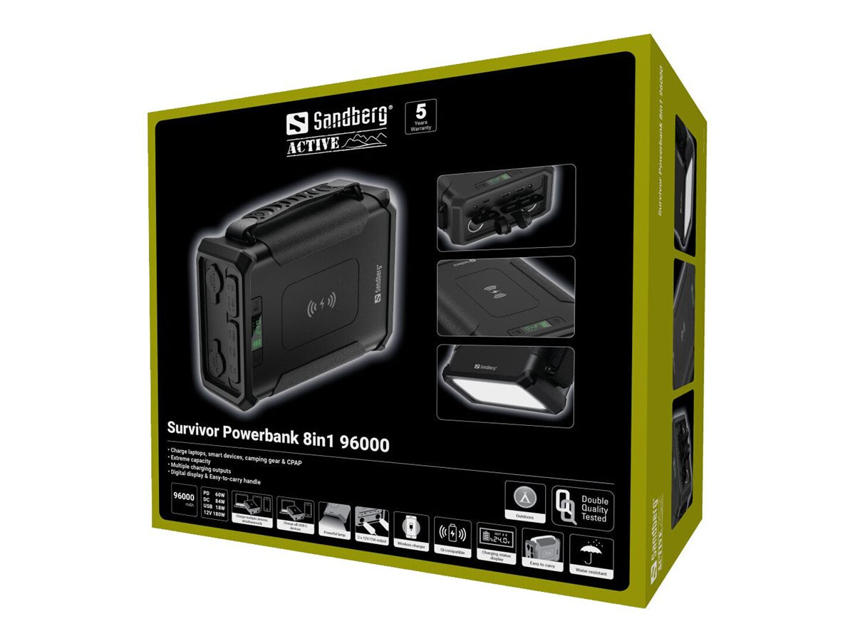 | Product Description | Sandberg Active Survivor 8in1 power bank - + AC power adapter + car power adapter x 32700 - 2 x USB, 24 pin USB-C, DC5521 - 180 Watt |