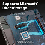Real tests don’t lie — load games 16% faster1 with the Crucial T500 PCle 4.0 NVMe SSD. Store more games with up to 2TB3 of storage. With Microsoft® DirectStorage, render faster6 and enjoy more detailed game textures.
