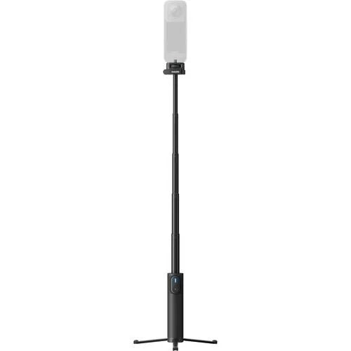 Quickly flip out the Insta360 Foldable 2-in-1 Selfie Stick with Remote Control to start capturing drone-like 360° footage or tripod-mounted images with ease. The selfie stick features a 1/4"-20 camera screw compatible with the Insta360 X series. An adjustable height range of 6.5 to 23" allows you to achieve a wide range of perspectives. When filming 360° footage, the selfie stick becomes invisible, and when you're ready to set it down, a built-in mini tripod allows you to place it on a flat surface.