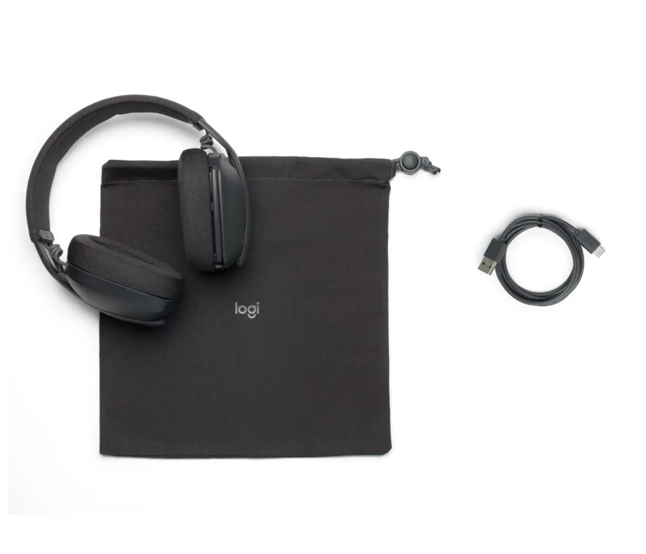 (1) Wireless range may vary based on environmental and computing conditions (2) Battery life may vary based on users and computing conditions (3) Images are illustrative and may vary from actual product. (4) The Logi Tune app currently supports headset voice prompts in the following languages: English, French, German, Italian, Spanish, and Portuguese (5) Excludes accessories and packaging
