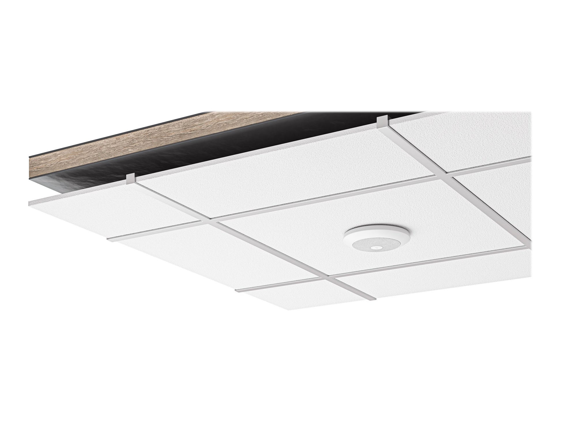 Available in graphite and white, Mic Pod Mount adjusts to fit ceiling tiles and conference tables up to 50mm (2 in) thick, and installs through holes from 25 - 65mm (1 - 2.5 in) in diameter.