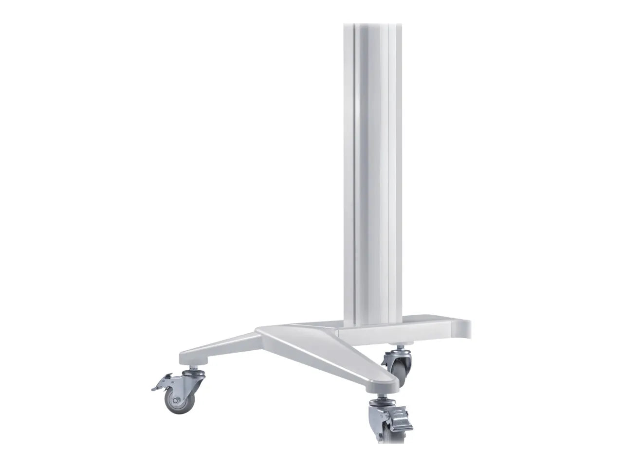 The Reflecta TV stand 70VCP-Shelf comes with an ultra strong lightweight aluminum column securely attached to an aesthetically pleasing base that together offers the most stable and secure solution for large and heavy displays. Users can easily flip the TV from landscape to portrait orientation or adjust it to remain at any position along the column. The toolless tilting design offers a variety of viewing angles. The cart is easy to move using the built-in D-ring handle while four lockable casters ensure maximum stability along the way. A height adjustable camera shelf and equipment tray are provided for devices and materials, and the integrated cable management system keeps wiring organized and protected.