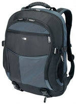 Īss kopsavilkums | Targus XL Laptop Backpack is perfect for the notebook user that has a lot going on and going along. It starts with a large separate, padded notebook compartment that fits most notebooks with 17" - 18" widescreens. This backpack includes a compartment for files and many other additional storage areas. Integrated in a front workstation are Smart Phone pocket and business card holder. Featuring an integrated water repelling protective rain coat that you can hide away in a secret pocket it ensures your notebook is protected even in the wet. Its moulded handle, waist strap, extra back cushioning and sturdy nickel fittings will provide the maximum protection whilst carrying your large screen notebook ensuring you arrive at your destination in comfort. |